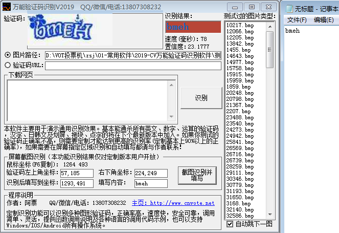 1、识别程序以dll或exe的方式提供使用,通过简单的函数调用即可识别复杂的验证码图片,也可以自动在屏幕上识别和填写。