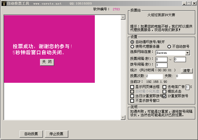 2.投票速度快,非IP限制单运行一个投票器即可达每分钟30票以上;