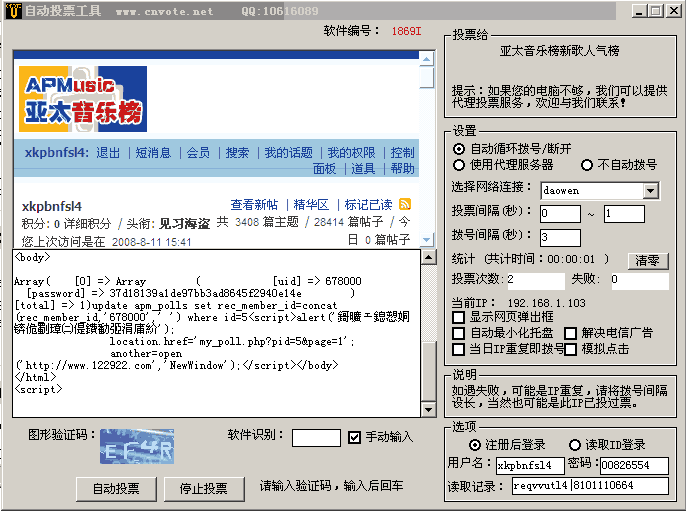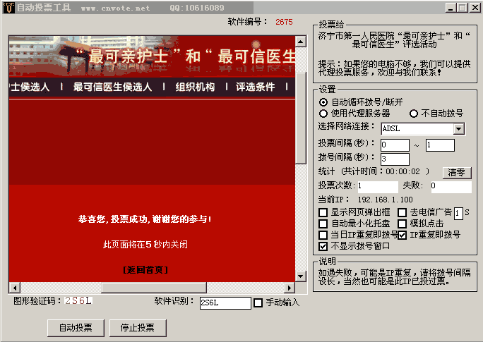 特点:自动识别复杂验证码,可突破IP限制,高速提交投票