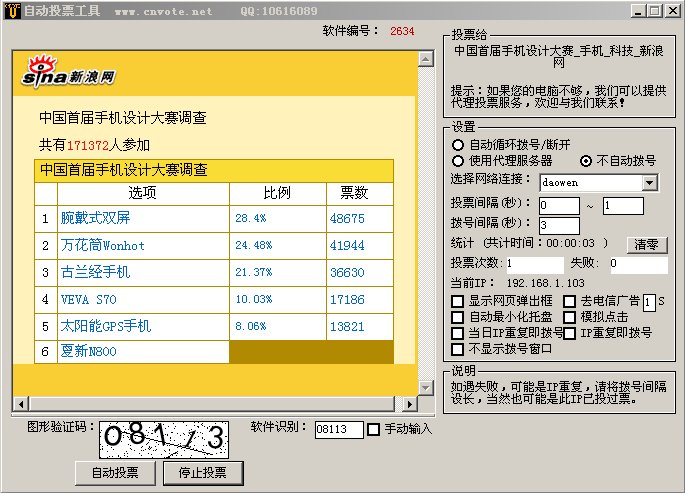 说明:投票软件都是要针对活动的限制定制开发的,在与我们交流时请先把投票网址发给我们看,我们才能具体根据要投票的难度报出准确的价格